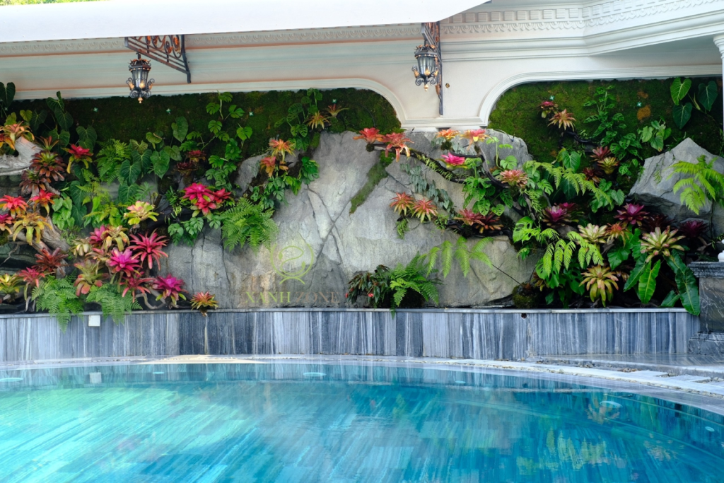 Trang Trí Hồ Bơi Đẳng Cấp 2026: Sự Kết Hợp Hoàn Hảo Giữa Ánh Sáng Và Thác Nước Đèn LED âm nước nghệ thuật: Sử dụng hệ thống đèn LED RGB đổi màu giúp hồ bơi trở nên lung linh, huyền ảo vào ban đêm. Bạn có thể điều chỉnh màu sắc phù hợp với không gian tiệc tùng hoặc thư giãn. Thác nước tràn hiện đại: Tiếng nước chảy róc rách không chỉ mang lại cảm giác gần gũi với thiên nhiên mà còn là một liệu pháp chữa lành âm thanh (Sound Therapy) tuyệt vời ngay tại nhà. Tạo điểm nhấn phong thủy: Thác nước kết hợp với hệ thống lọc thông minh không chỉ làm đẹp mà còn giúp dòng nước luôn luân chuyển, mang lại vượng khí cho gia chủ. Hình ảnh thực tế: Hãy tham khảo các mẫu thiết kế tràn bờ và thác nước mà Hamico đã thực hiện để thấy sự khác biệt về thẩm mỹ.
