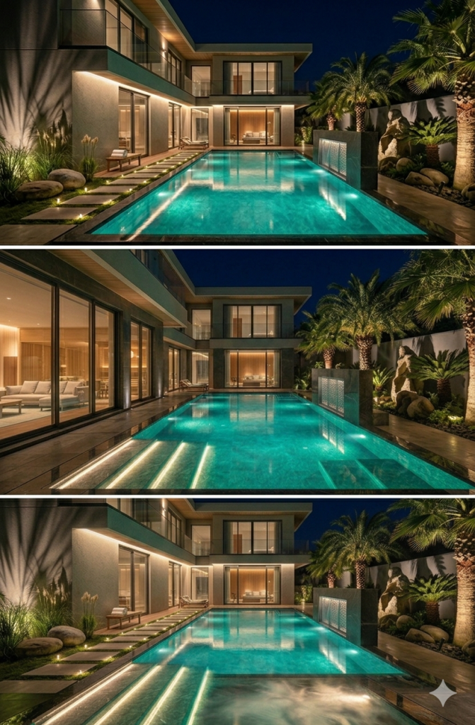 Nghệ thuật chiếu sáng hồ bơi: Đèn LED âm nước và những điều cần biết
