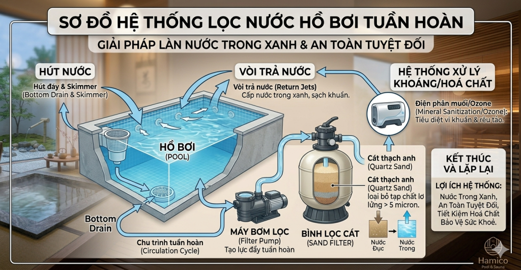Khám phá các công nghệ lọc nước hồ bơi hiện đại nhất hiện nay. Hamico cung cấp giải pháp lọc nước giúp loại bỏ vi khuẩn, tiết kiệm hóa chất và bảo vệ sức khỏe gia đình.
