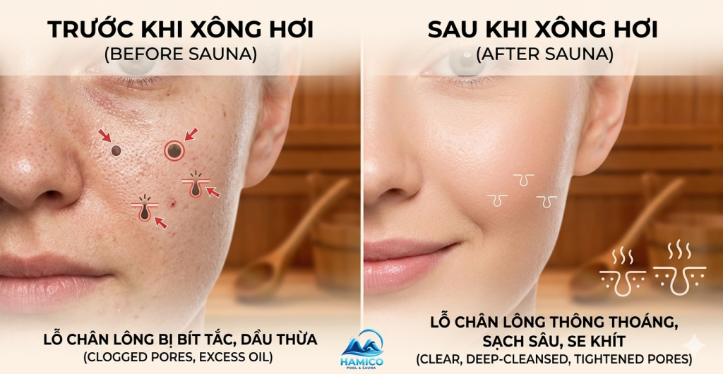 Trong nhịp sống hiện đại, việc sở hữu một làn da khỏe mạnh và trẻ trung không chỉ đến từ các loại mỹ phẩm đắt tiền mà còn từ những liệu pháp chăm sóc sức khỏe toàn diện. Xông hơi Sauna từ lâu đã được xem là “liều thuốc quý” giúp phụ nữ Bắc Âu và giới thượng lưu duy trì vẻ đẹp thanh xuân. Hãy cùng Hamico khám phá tại sao liệu pháp này lại có khả năng trẻ hóa làn da kỳ diệu đến thế. 1. Cơ chế tác động của nhiệt độ đối với làn da Khi bạn bước vào phòng xông hơi Sauna, nhiệt độ cao (thường từ $70^{\circ}C$ đến $90^{\circ}C$) sẽ khiến nhiệt độ cơ thể tăng lên. Lúc này, các mạch máu dưới da giãn nở, lưu lượng máu tăng lên đáng kể. Quá trình này không chỉ mang oxy và chất dinh dưỡng đến nuôi dưỡng tế bào da tốt hơn mà còn kích thích sản sinh Collagen tự nhiên – chìa khóa vàng cho sự đàn hồi và săn chắc. 2. Đào thải độc tố – Thanh lọc tận sâu lỗ chân lông Lợi ích rõ rệt nhất của xông hơi Sauna chính là khả năng kích thích đổ mồ hôi sâu. 3. Trẻ hóa làn da và giảm thiểu nếp nhăn Việc xông hơi thường xuyên giúp cải thiện đáng kể cấu trúc da: 4. Hỗ trợ điều trị các vấn đề về da Xông hơi khô (Sauna) đặc biệt có lợi cho những người có làn da nhờn hoặc mụn trứng cá. Nhiệt độ cao giúp tiêu diệt một số loại vi khuẩn gây mụn và làm thông thoáng lỗ chân lông bị tắc nghẽn. Tuy nhiên, nếu bạn có làn da quá nhạy cảm hoặc bị chứng đỏ mặt (Rosacea), hãy tham khảo ý kiến chuyên gia về thời gian xông hơi phù hợp. 5. Lời khuyên để có làn da đẹp hoàn hảo sau khi xông hơi Để tối ưu hóa hiệu quả trẻ hóa, bạn nên bỏ túi các lưu ý sau: Kết luận: Đầu tư một phòng xông hơi Sauna tại gia không chỉ là nâng tầm không gian sống mà còn là đầu tư lâu dài cho sức khỏe và sắc đẹp. Với kinh nghiệm nhiều năm trong thiết kế và thi công giải pháp Wellness, Hamico tự hào mang đến cho bạn những phòng xông hơi đạt chuẩn đẳng cấp quốc tế. Bạn đang tìm kiếm giải pháp xông hơi phù hợp cho biệt thự của mình? Liên hệ ngay với Hamico qua Hotline: 0963.459.634 để được kiến trúc sư tư vấn chi tiết nhất!