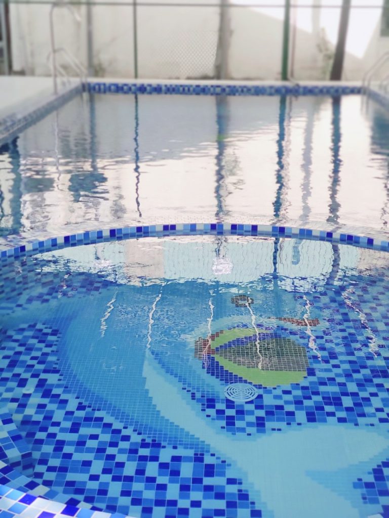 - Vật liệu hoàn thiện: Gạch Mosaic thủy tinh cao cấp, phản quang rực rỡ.
