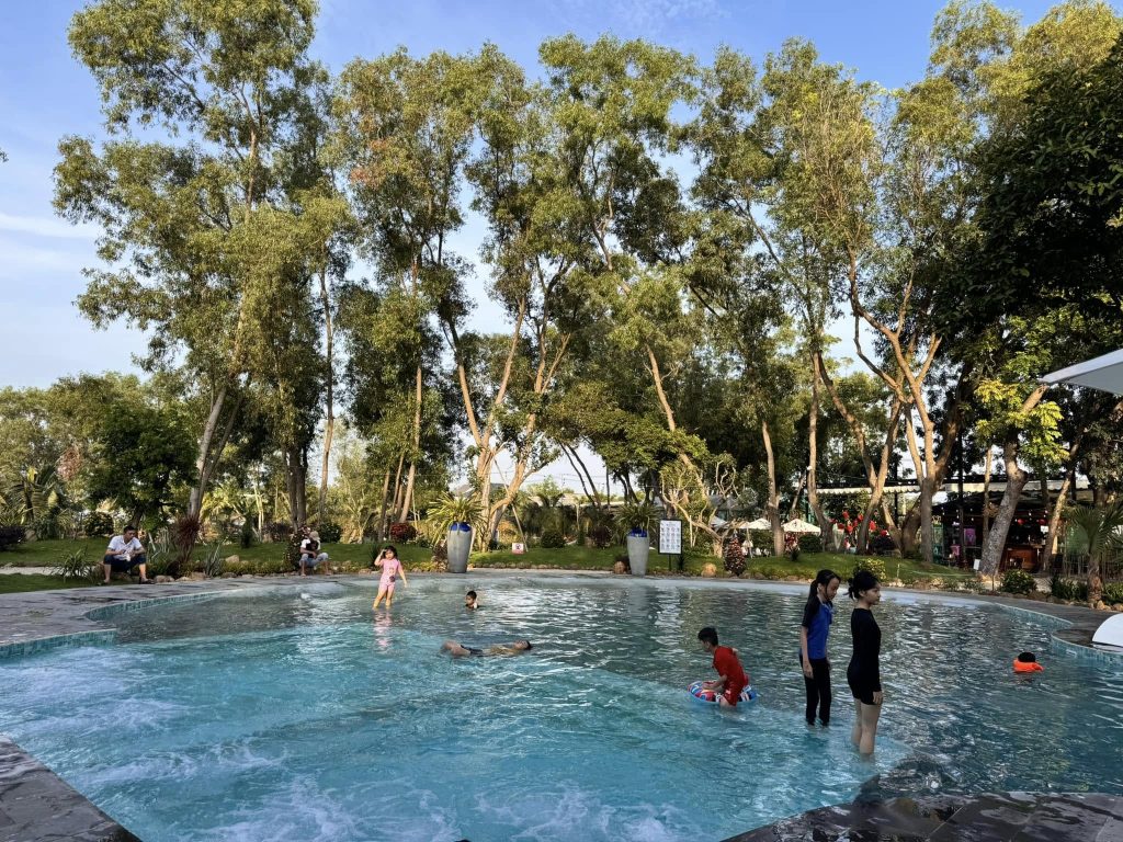 - Thiết kế: Hồ bơi uốn lượn theo cảnh quan tự nhiên