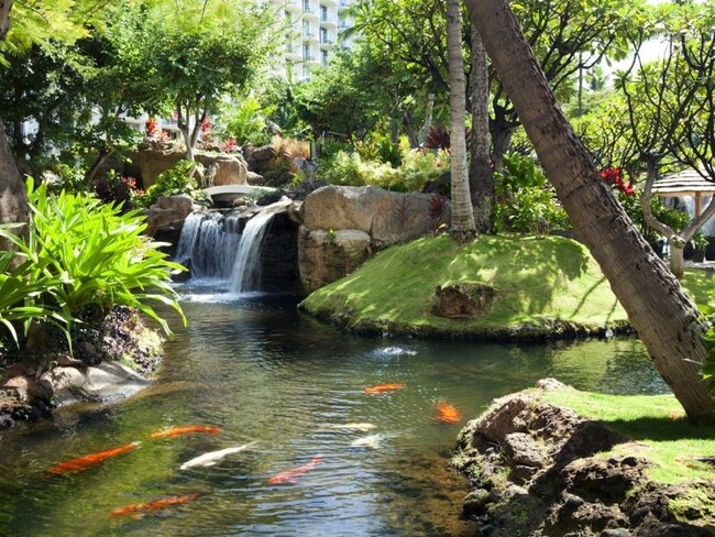 - Hồ cá Koi với hệ thống lọc vi sinh, đá cuội trang trí và cây thủy sinh bao quanh.