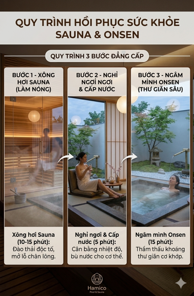 Trong giới mộ điệu Wellness, việc sở hữu một phòng xông hơi Sauna hay một bể khoáng Onsen đơn lẻ đã là một sự tuyệt vời. Tuy nhiên, để đạt đến đỉnh cao của sự hồi phục, người Nhật thường kết hợp cả hai trong một quy trình nạp năng lượng khép kín. Hamico sẽ giúp bạn hiểu rõ tại sao sự kết hợp này lại được xem là “liệu pháp vàng” cho sức khỏe.
